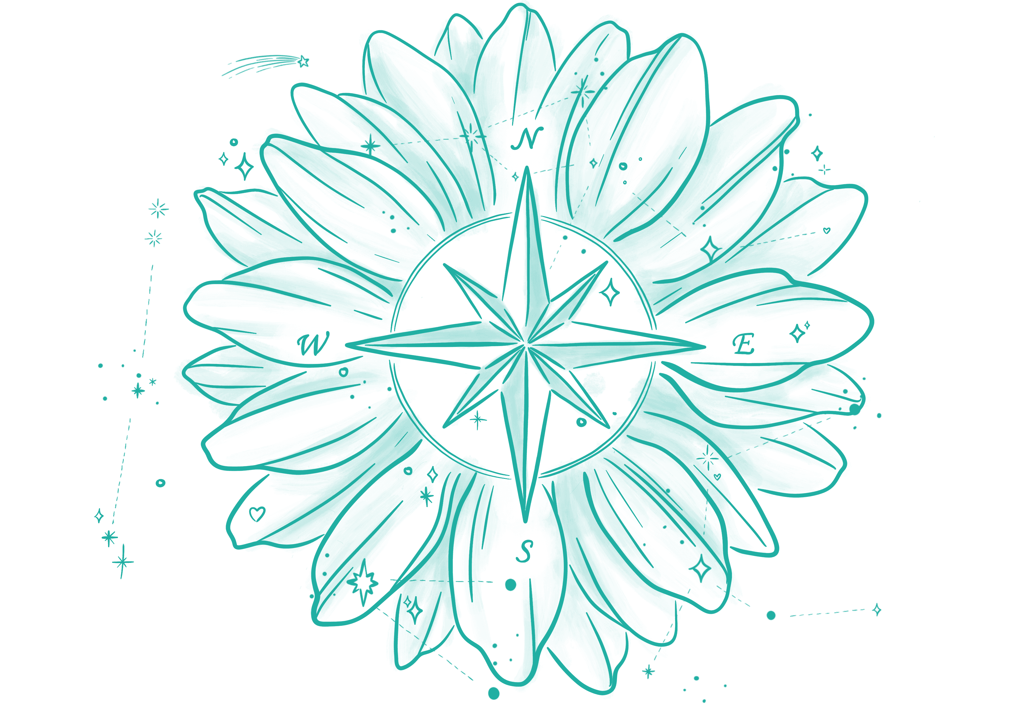 Eine detaillierte, handgezeichnete Illustration einer Sonnenblume, die eingerahmt präsentiert wird. Sie repräsentiert die Lebenskraft und positive Energie, die Birgit Bernauer in ihrer Seelenhaus-Methode verkörpert, und verleiht dem Raum eine beruhigende, ästhetische Note.